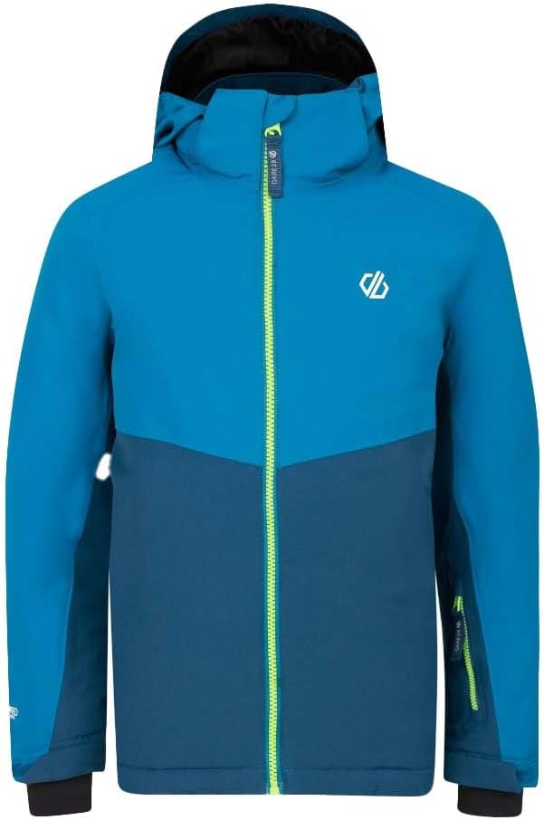 The Kids' Impose IV Jacket. Crafted from recycled waterproof and breathable fabric with our advanced Ared 10,000 technology, this kids' ski jacket is designed for performance. With a water-repellent finish and taped seams, it ensures complete waterproof protection, while the recycled high-warmth padding fights off the cold weather. Features including a ski pass pocket and fixed snow skirt make this ski coat ideal for a day on the slopes. The children's ski jacket comes with a fixed foldaway hood for extra protection when needed, plus two lower zip pockets for convenient storage.