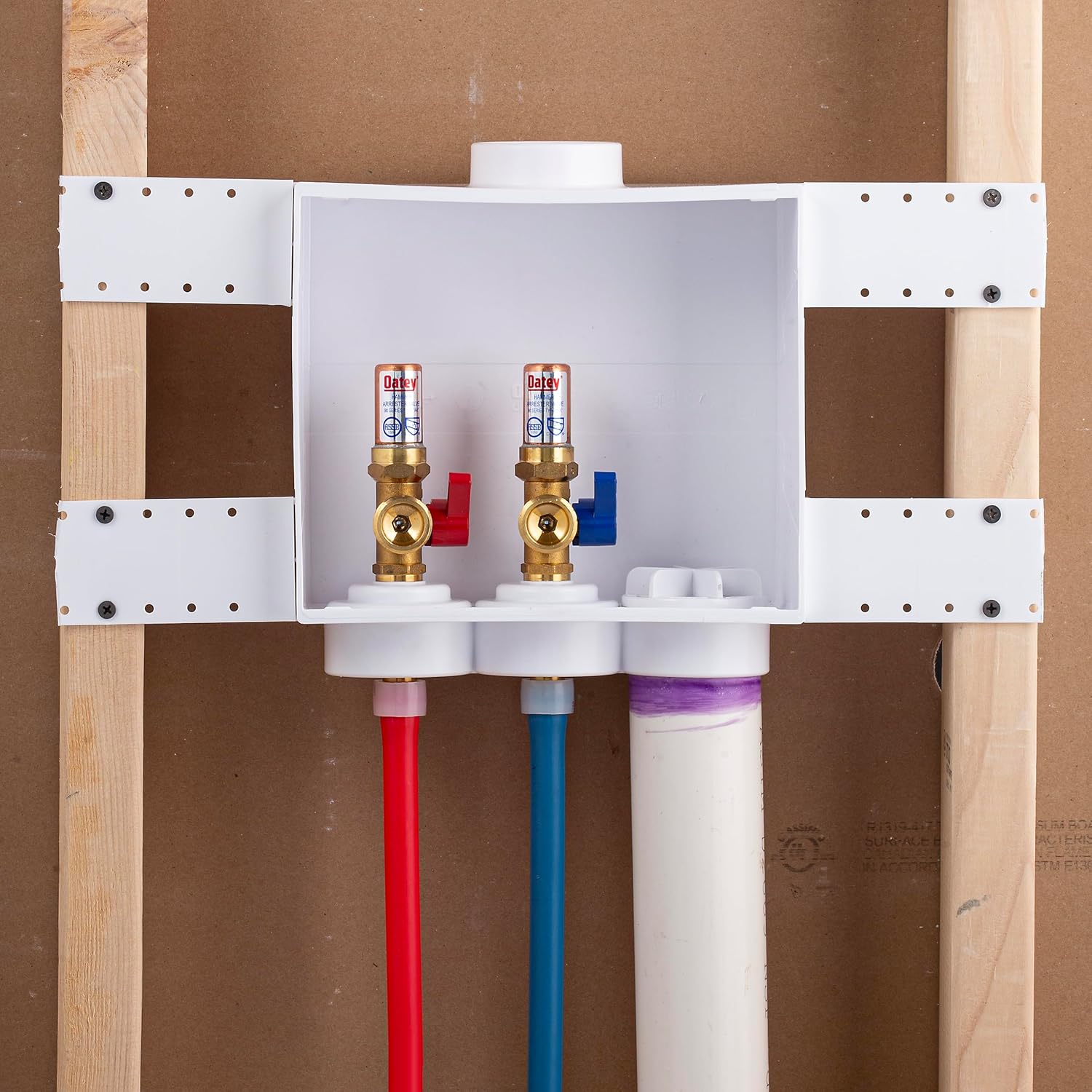 Product Description The Quadtro Push Connect washing machine outlet box is the ultimate solution for installation flexibility. The Push Connect system makes joining copper, CVPC or PEX pipe simple and fast, without soldering, crimping, or solvent welding! Simply insert the pipe into the valve, and it instantly locks to create a perfect seal! The disconnect tool also makes it easy to disassemble the pipe and re-use the valves The Quadtro Push Connect washing machine box also allows for right, left, or center drain and bottom or top mount valves. Made of high impact polystyrene and supplied with four mounting brackets, the Quadtro boxes provide maximum durability and performance for residential applications. Oatey products can be found in residential and commercial applications and have achieved excellent brand name recognition with consumers. All products are backed with the highest quality technical and customer support programs in the industry From the Manufacturer Oatey products can be found in residential and commercial applications and have achieved excellent brand name recognition with consumers. All products are backed with the highest quality technical and customer support programs in the industry